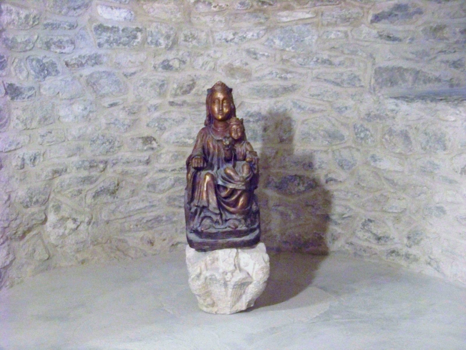 la montagne: la forêt, la vierge sur le chemin; l'abbaye et ses dépendances;dans l'abbaye une petite vierge toute seulette avec son ptiot, salut biquette